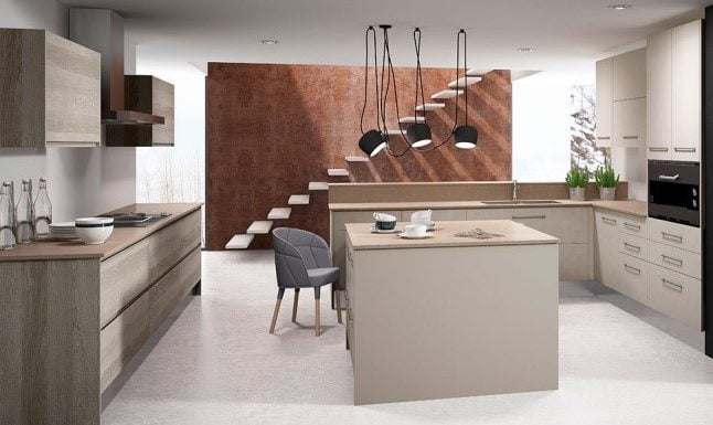 - Para cocinas con espacio reducido, lo ideal es distribuir en forma de “L” consiguiendo mayor superficie de trabajo sin recargar demasiado.